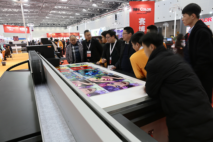 在3月3日-7日的花桥广告展中,F2513G-3200平板打印机依然人气爆棚,万众瞩目,引的观展人员竞相围观,纷纷惊叹于EPS3200喷头在UV机中的绝佳表现。