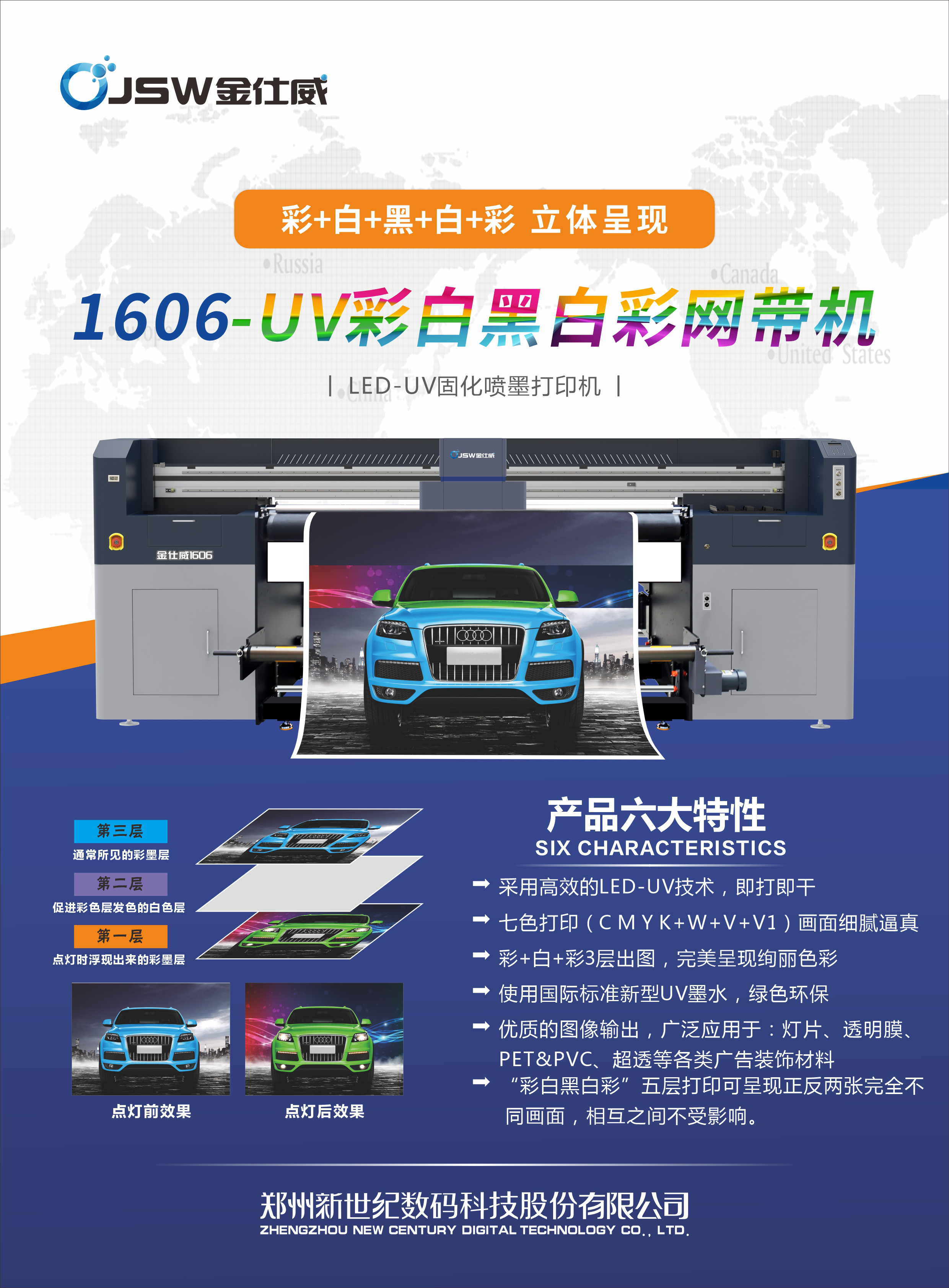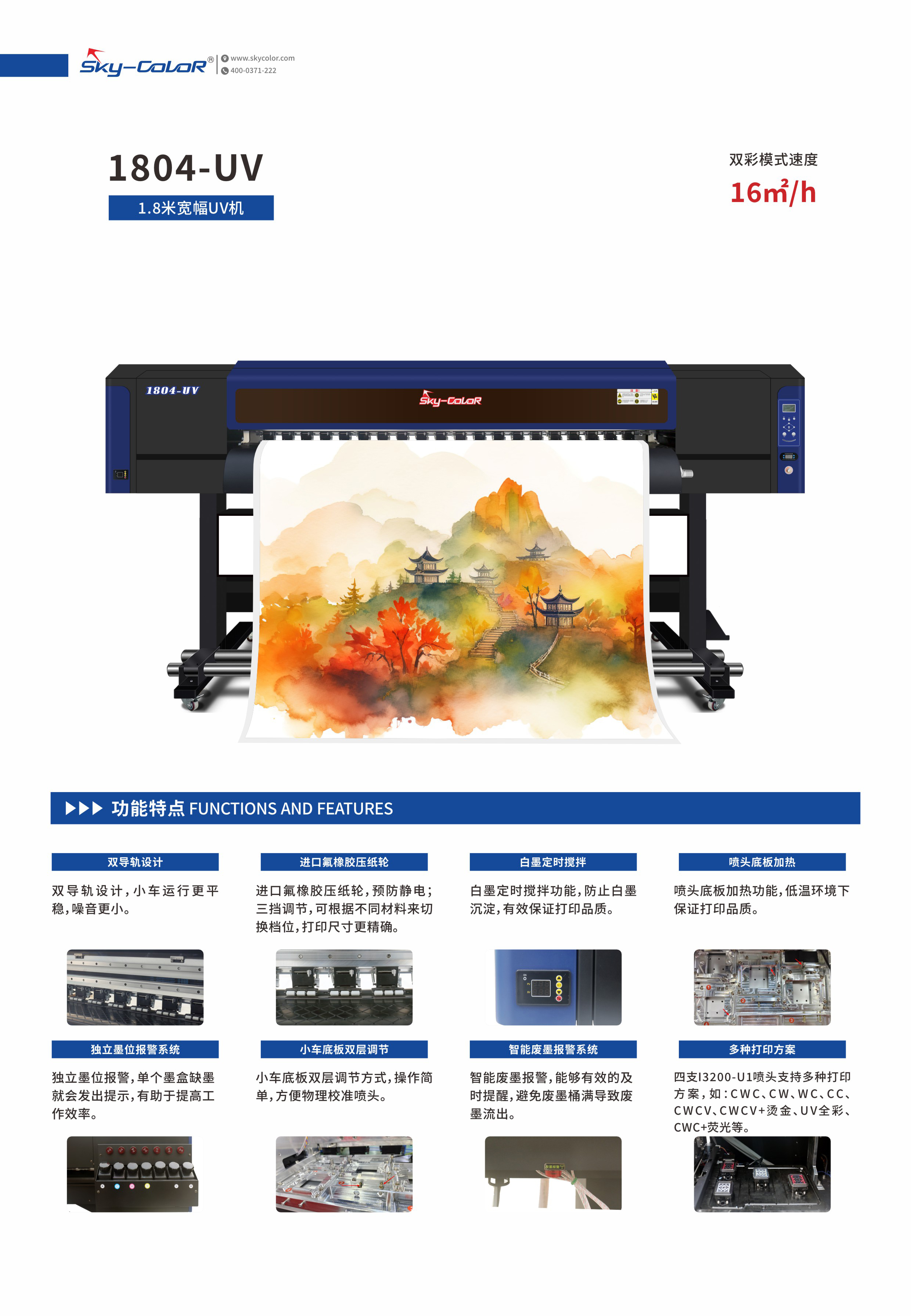 全新出品的16头写真机搭载先进的打印引擎,打印速度可达230㎡/h,能轻松应对大批量订单。其智能色彩管理系统,可精准还原色彩,无论是细腻的图像还是鲜艳的图文,都能呈现出惊艳效果,满足广告制作、包装印刷等多样化需求。