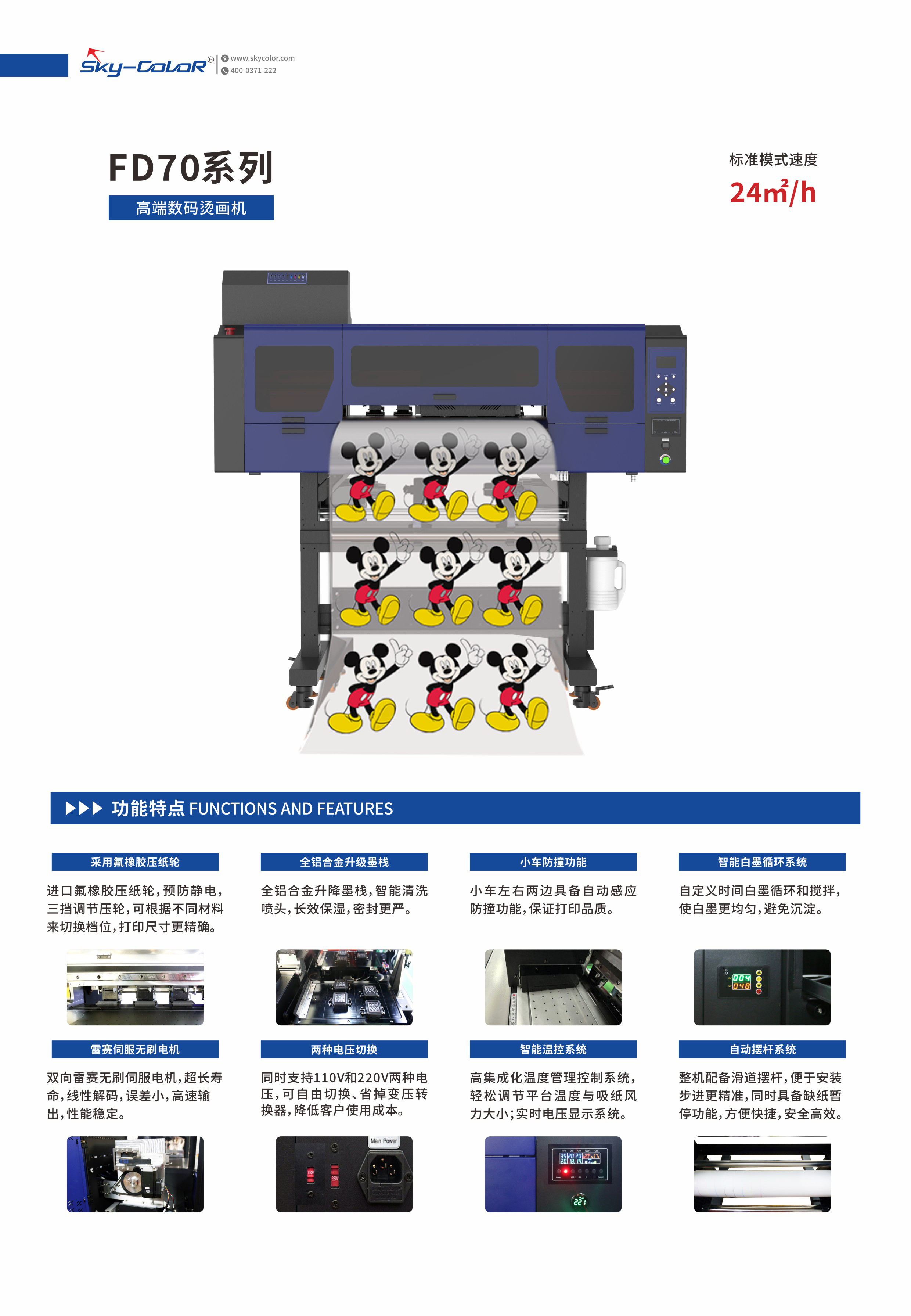 FD70-5 白墨烫画机适用于服装定制、礼品制作、文创产品开发等多个领域。无论是小型工作室,还是大型生产企业,都能借助这款设备拓展业务,满足市场对个性化烫画产品的需求,创造更多商业价值。